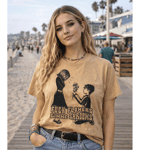 Printed on a 100% cotton tan tee, this design features a bold black graphic of a kneeling figure offering mushrooms instead of flowers — perfect for anyone who prefers counterculture over tradition.