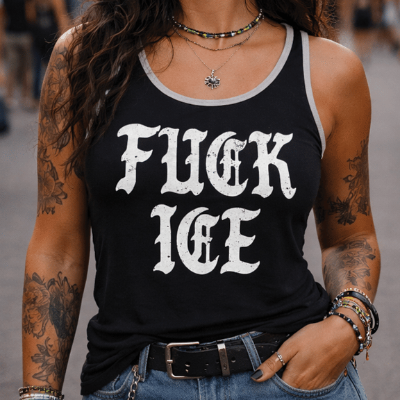 Make your stance unmistakable with the Fuck ICE Tank, a clean, hard-hitting piece that blends attitude with everyday wearability. Featuring a distressed gothic-style print across a classic black tank with contrasting gray trim, this design delivers a raw, unapologetic message rooted in street culture and individuality.