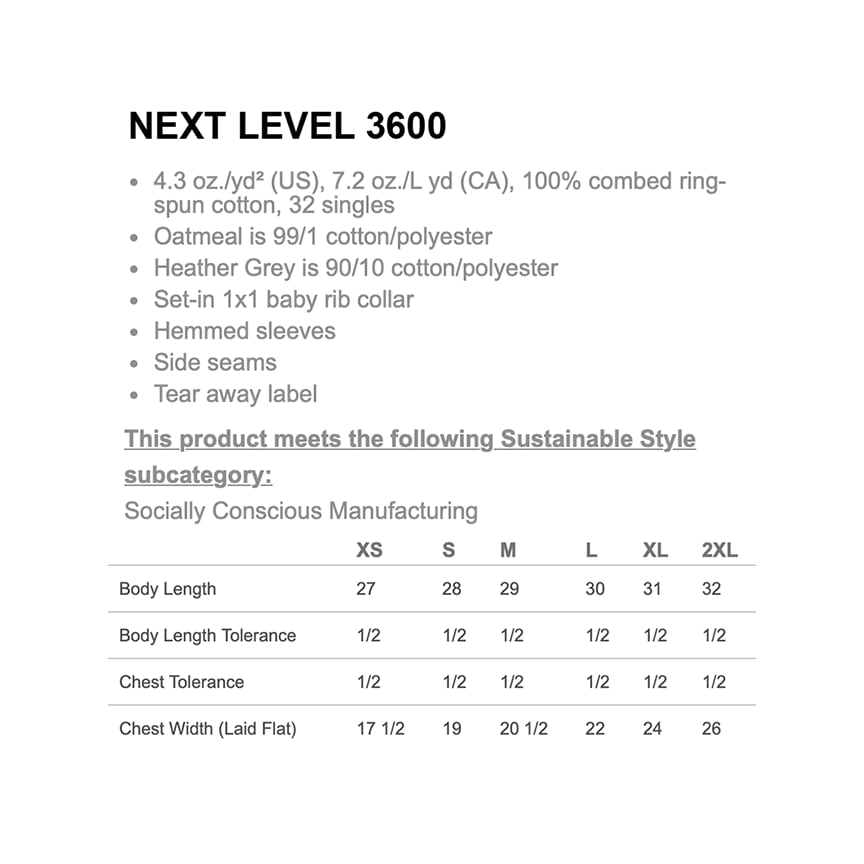 - Printed on Next Level 3600 - 100% soft cotton tee
